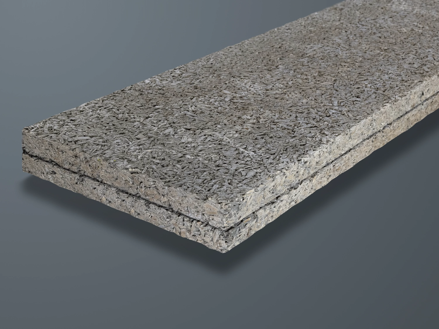 Dvojitá štěpkocementová deska tl. 70 nebo 100 mm.