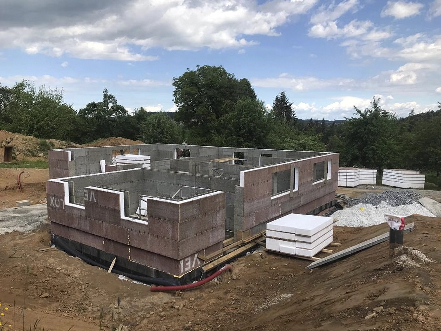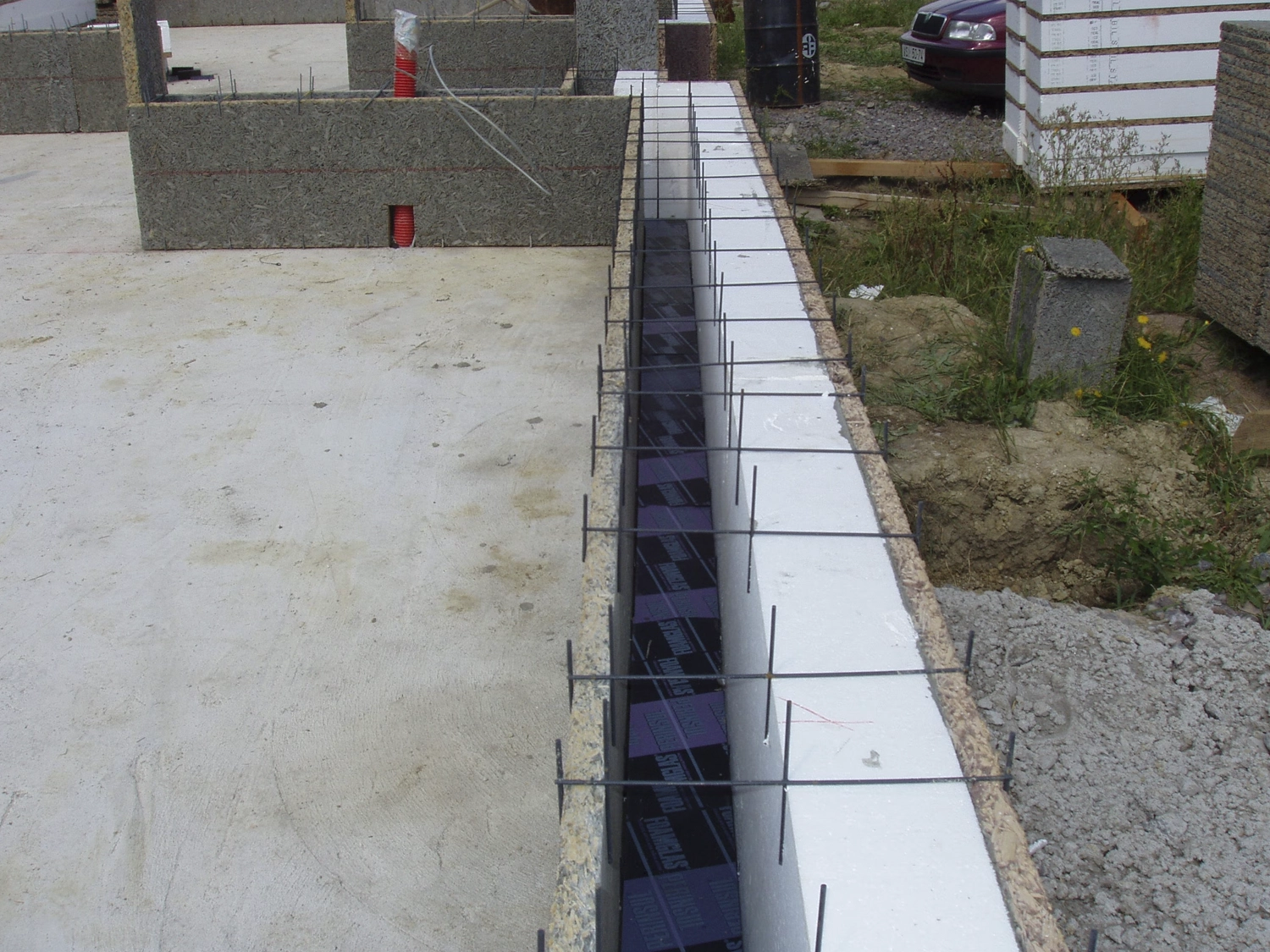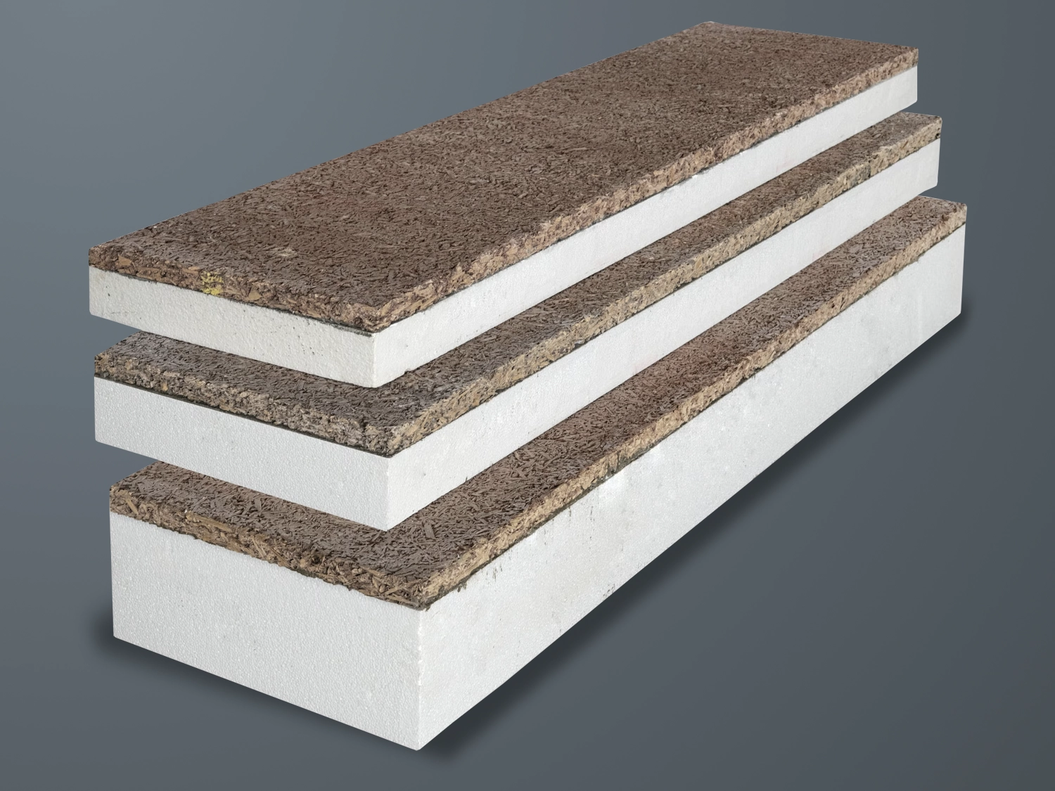 Štěpkocementová deska tl. 35 mm v kombinaci s bílým pěnovým polystyrenem.